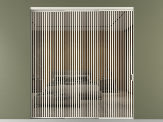 Во всех алюминиевых перегородках, независимо от типа установки, используется компланарный раздвижной механизм, благодаря которому декоративная крышка и полотно находятся в одной плоскости.