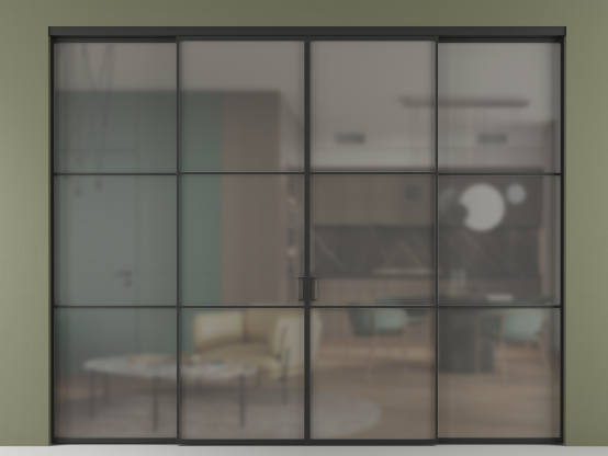 Во всех алюминиевых перегородках, независимо от типа установки, используется компланарный раздвижной механизм, благодаря которому декоративная крышка и полотно находятся в одной плоскости.