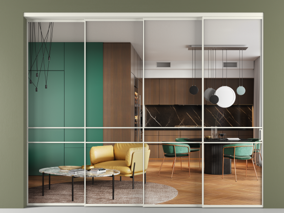 Алюминиевые перегородки Formato — это стильное и функциональное решение для современных интерьеров, предназначенное для разделения и зонирования пространства внутри одного помещения. Перегородки изготавливаются под индивидуальные размеры с шагом в 1 мм, что даёт возможность подобрать оптимальное соотношение размеров и количества створок, в том числе и для нестандартных проёмов.