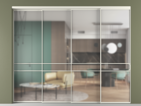 Во всех алюминиевых перегородках, независимо от типа установки, используется компланарный раздвижной механизм, благодаря которому декоративная крышка и полотно находятся в одной плоскости.