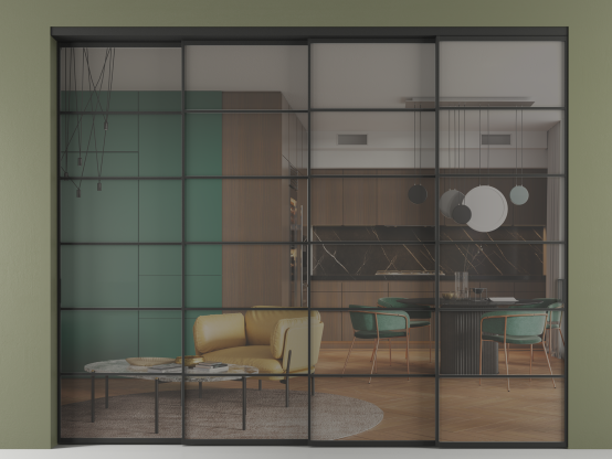 Алюминиевые перегородки Formato — это стильное и функциональное решение для современных интерьеров, предназначенное для разделения и зонирования пространства внутри одного помещения. Перегородки изготавливаются под индивидуальные размеры с шагом в 1 мм, что даёт возможность подобрать оптимальное соотношение размеров и количества створок, в том числе и для нестандартных проёмов.