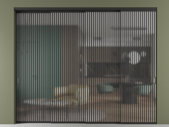 Во всех алюминиевых перегородках, независимо от типа установки, используется компланарный раздвижной механизм, благодаря которому декоративная крышка и полотно находятся в одной плоскости.