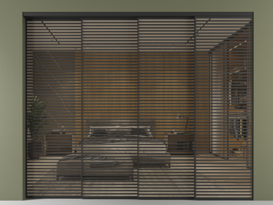Во всех алюминиевых перегородках, независимо от типа установки, используется компланарный раздвижной механизм, благодаря которому декоративная крышка и полотно находятся в одной плоскости.