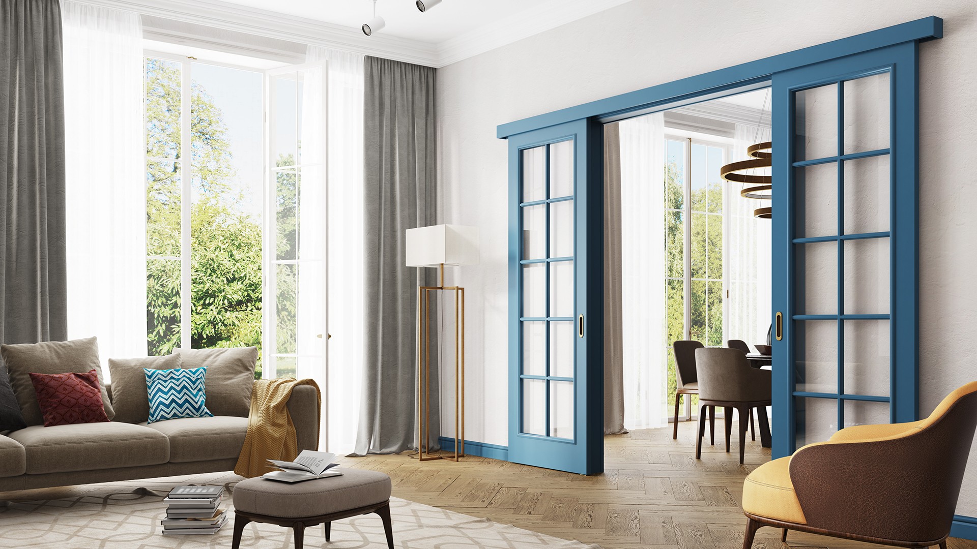 Раздвижные двери вдоль стены